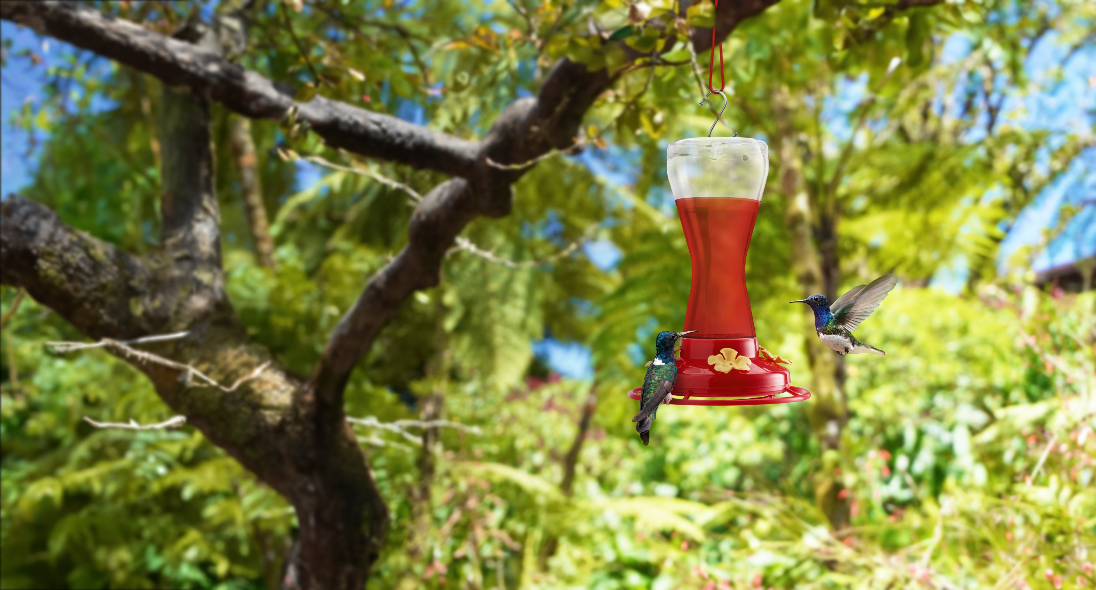 Outdoor Hummingbird Feeder with 4 Feeding Ports, 20 Ounce